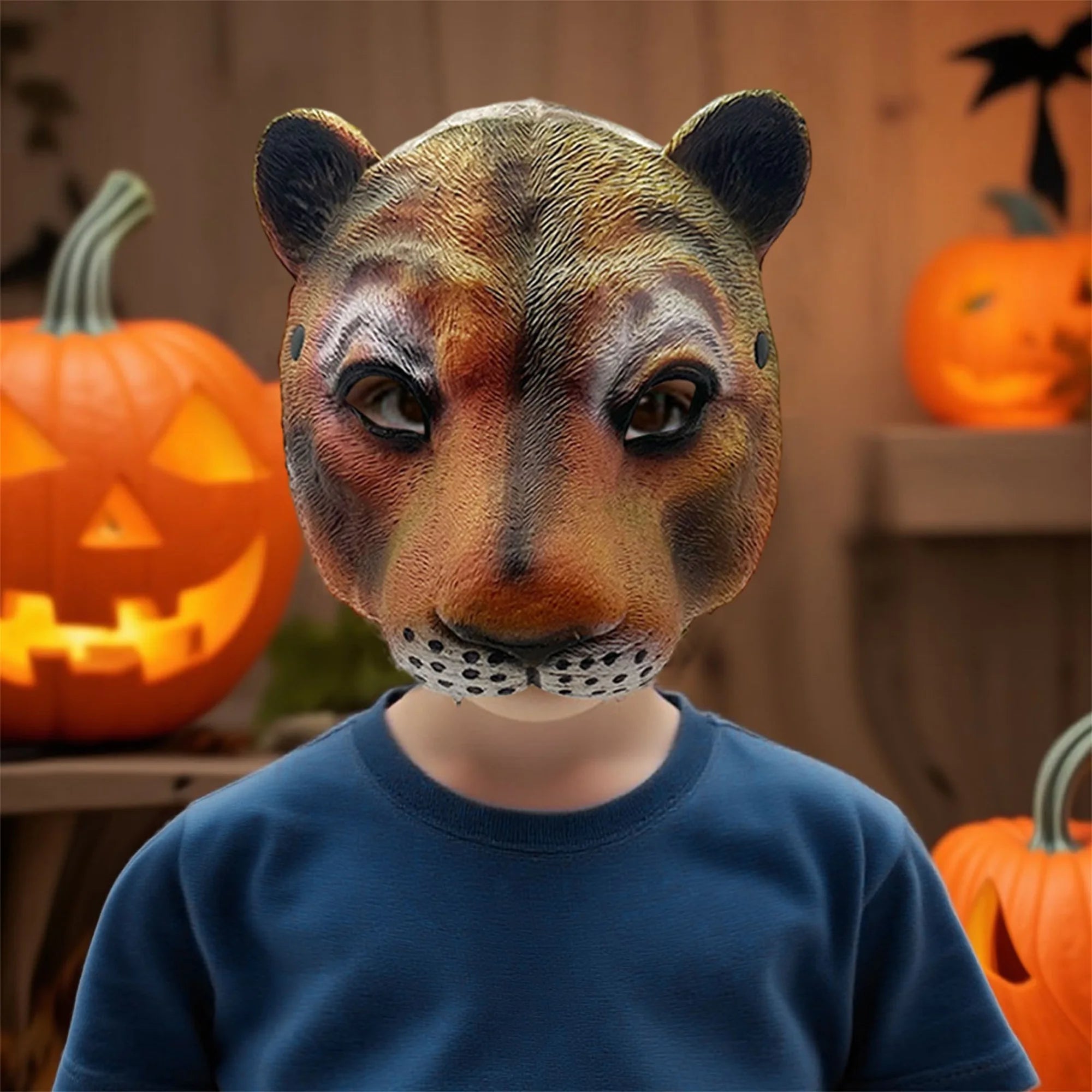 Funny Halloween Tiger Face Mask Cosplay Costume Full Head Latex Animal Mask for Party Dress Up and Favor
