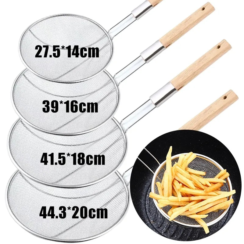 Stainless Steel Skimmer Spoon with Wooden Handle Large Mesh Frying Filter Oil Residue Food Strainer Easy Clean Kitchen Cooking