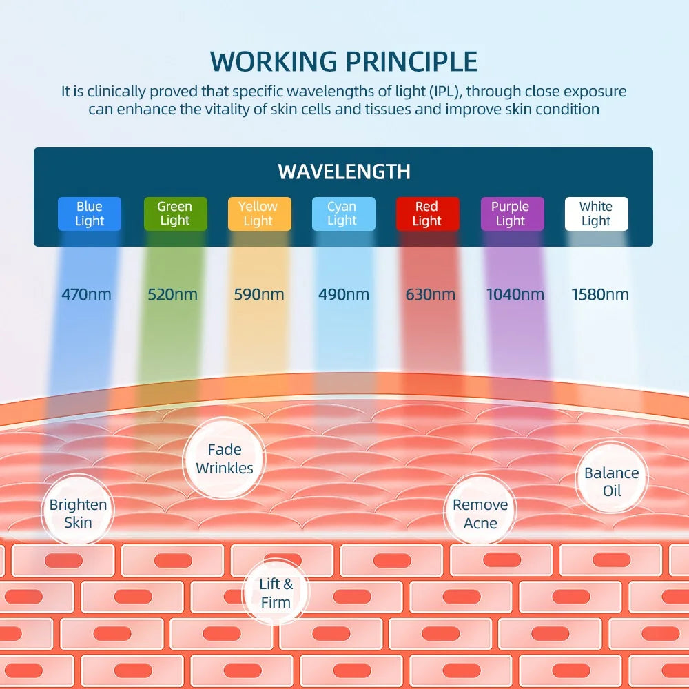 7 Colors LED Light Photon Therapy Facial Beauty Mask Red Light Therapy Brighten Skin Rejuvenation Whitening Tighten
