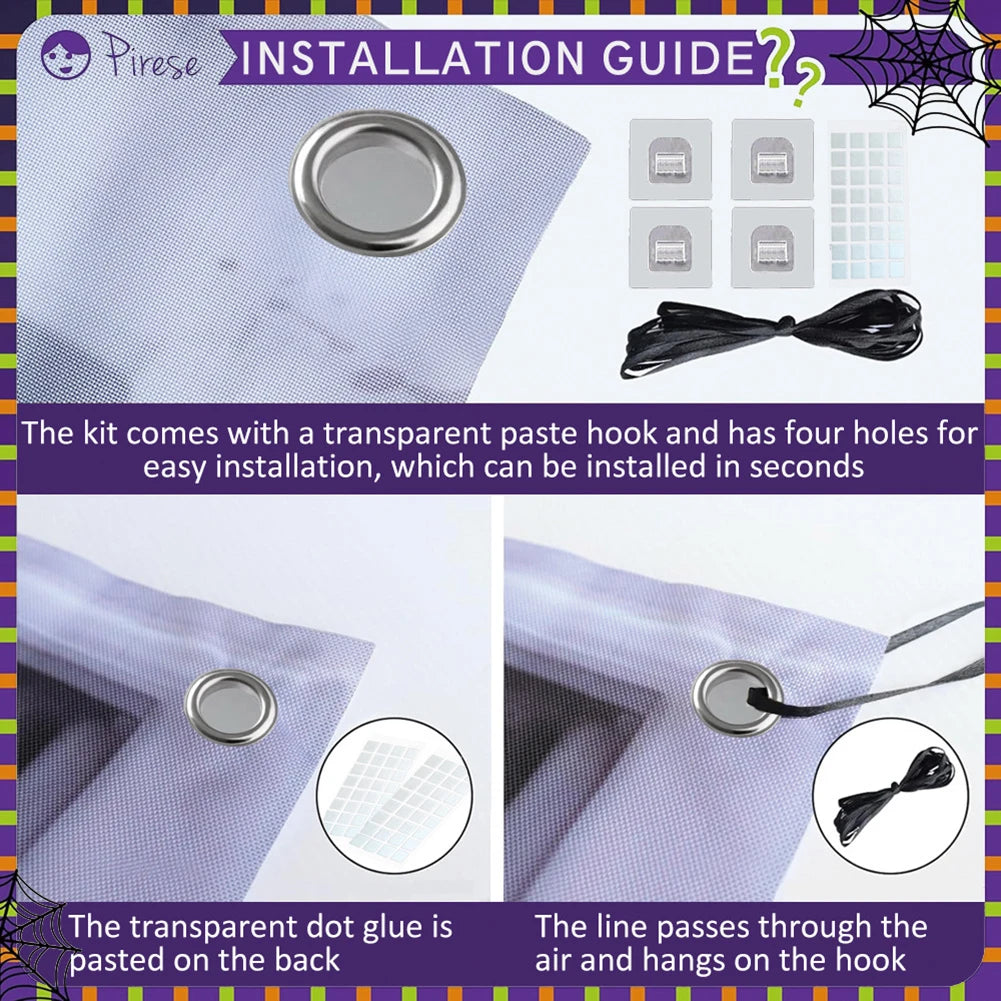 Halloween Scary Window Cover Terrifying Printed Eerie Scary Tapestry with Hooks Lunatic Wall Cover for Haunted House Scenery
