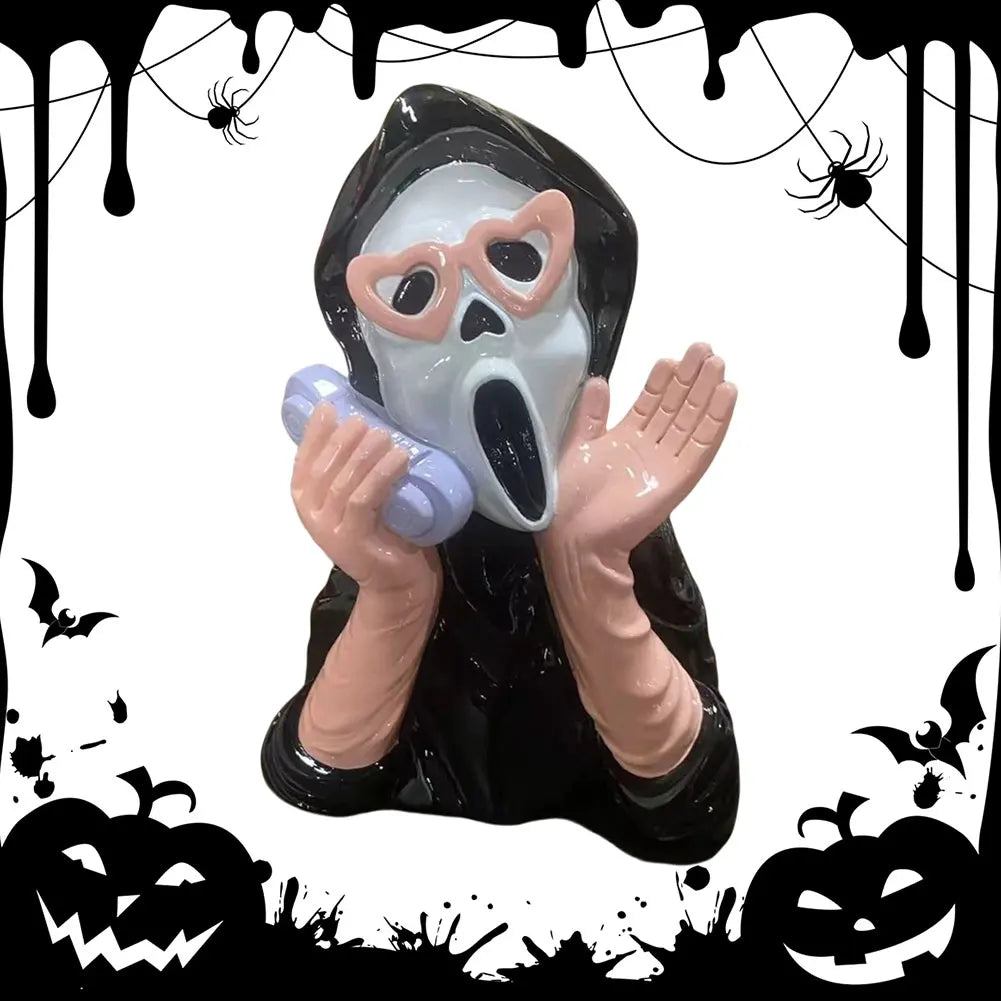 Pink Screaming Face Ghost Figurine Gothic Creative Halloween Resin Ornament Screaming Girl Telephone Ghost Statue Decor